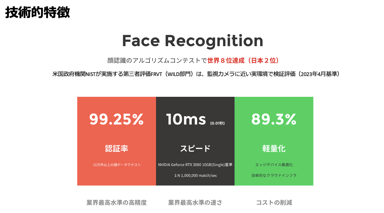ポイント:ブラックリストなどの重要人物の検知と通知に対応した無人店舗向けセキュリティ技術→ 顔認識×店舗出入管理の商用利用に即した設計